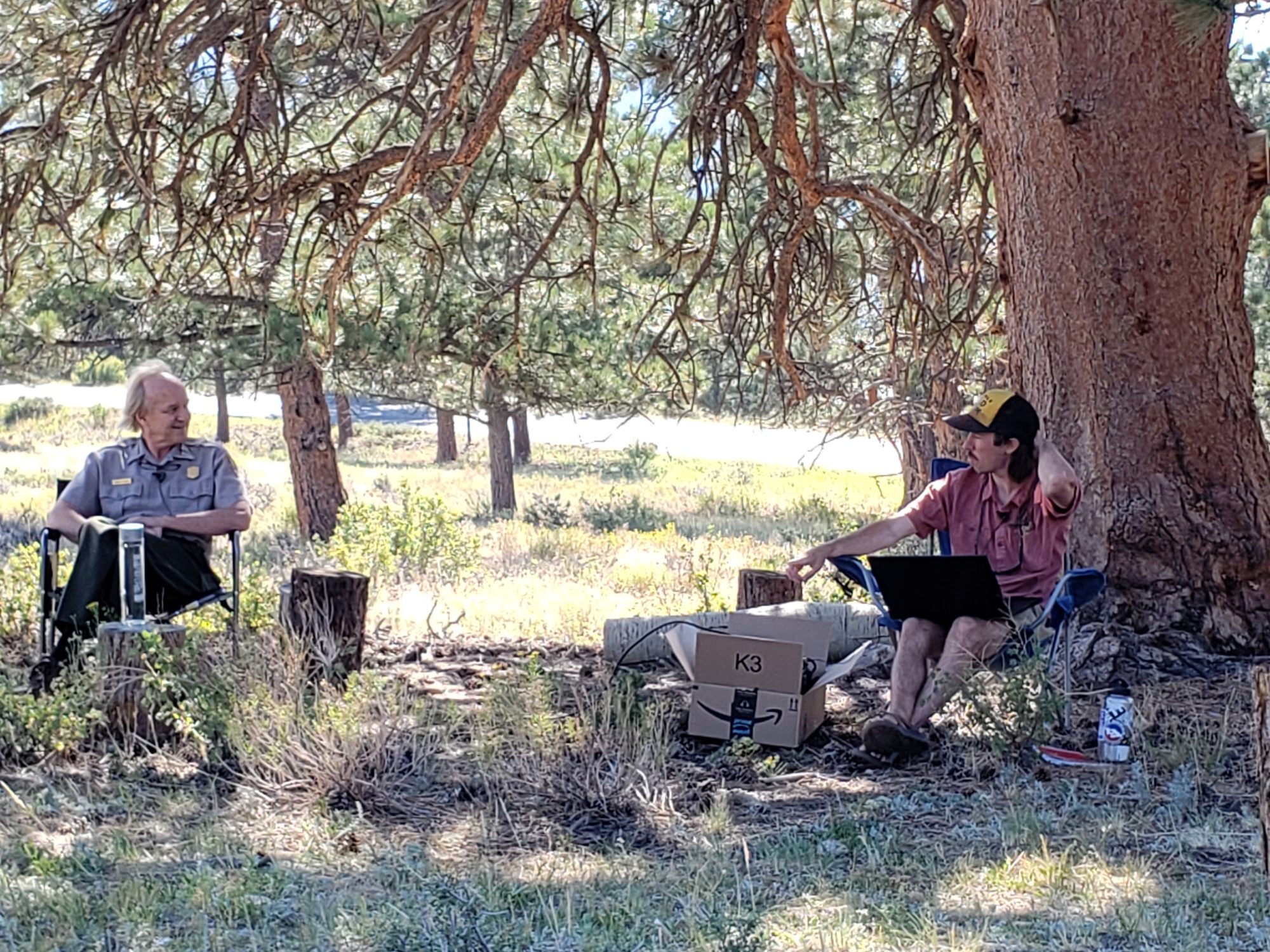 2020 PPL October 28, 2020 2000 × 1500 Home Alex Miller, PLHC researcher, interviewing Barry Sweet, RMNP Wilderness Office Manager, outside of the Wilderness Office during 2020 PPL.